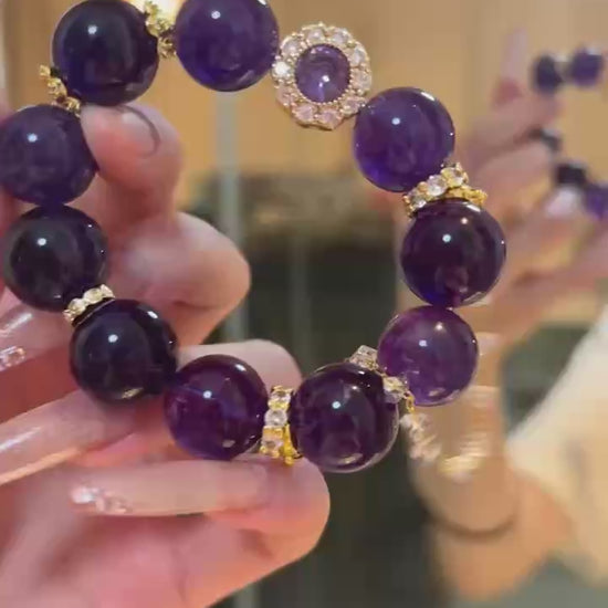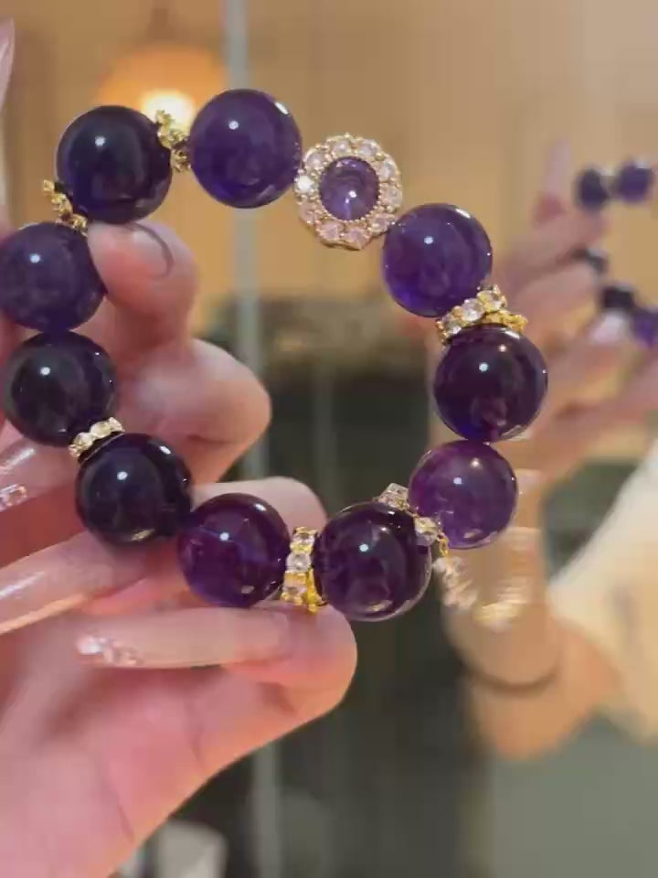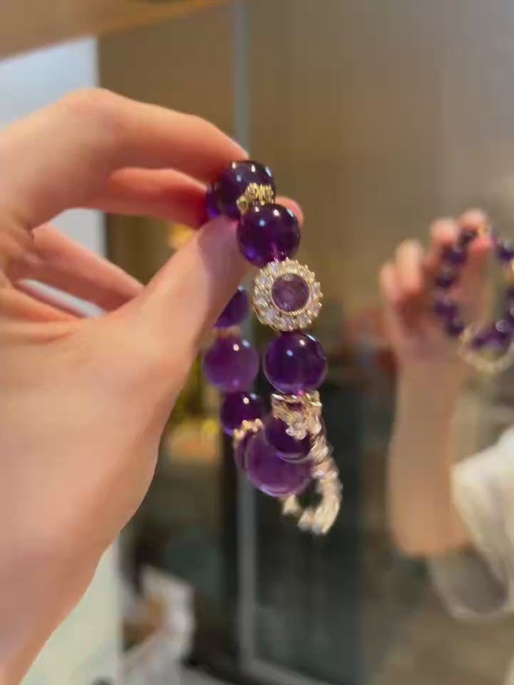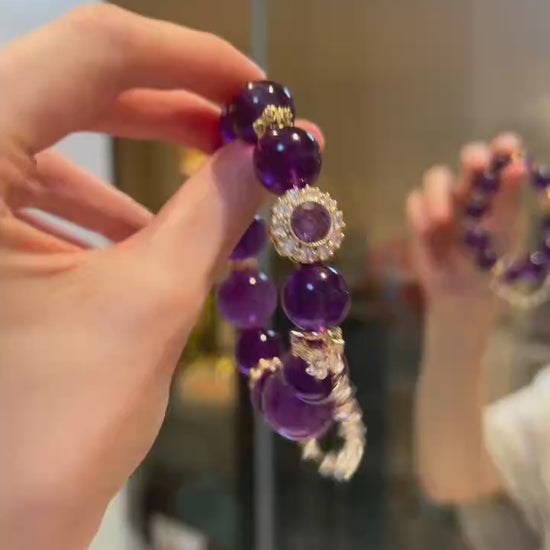 The bracelet is adorned with elegant gold - toned and diamond - like accents, adding a touch of luxury and sophistication. These embellishments not only enhance the visual appeal of the bracelet but also symbolize the wealth and success that the amethyst aims to attract.