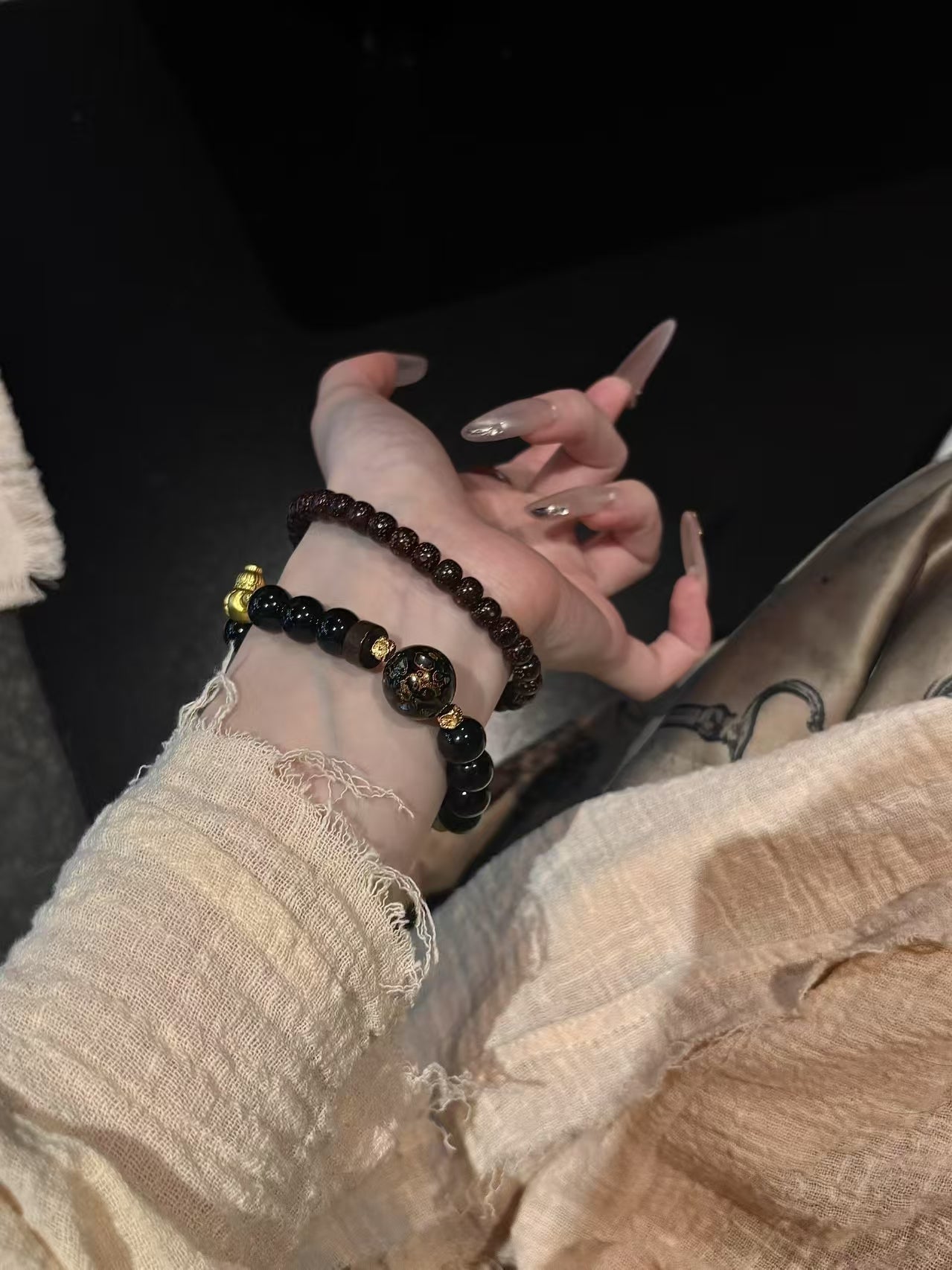 The deep - hued black obsidian beads form the core of this bracelet. Renowned as a powerful protective stone, obsidian is believed to shield against negative energies, acting as a spiritual guardian for daily life. Its smooth texture and rich color bring an understated elegance.