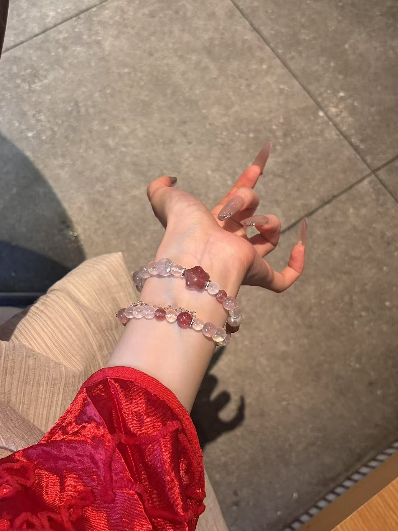 Charming Love: Strawberry Quartz and Morganite Rose Quartz Bracelet Set