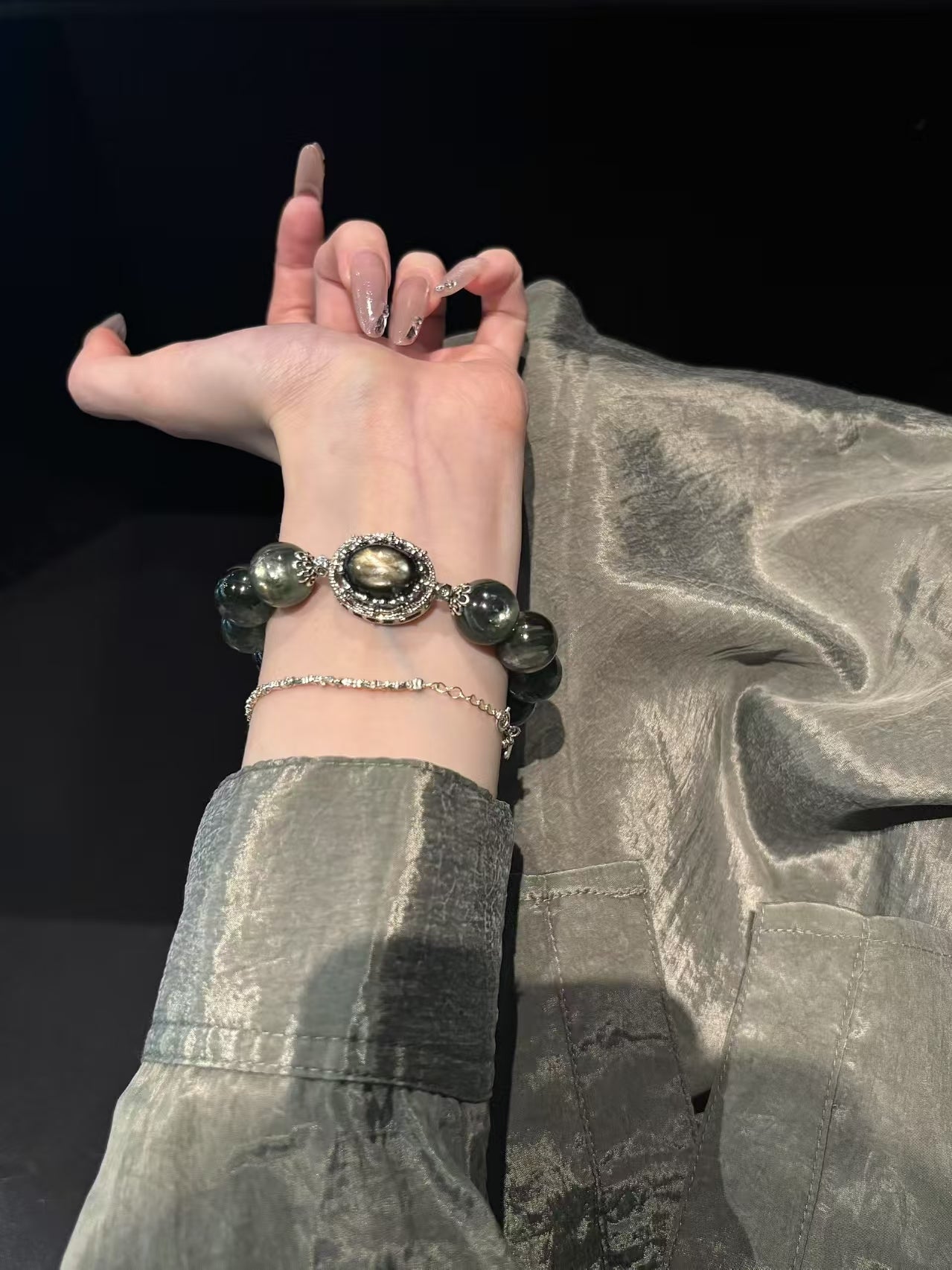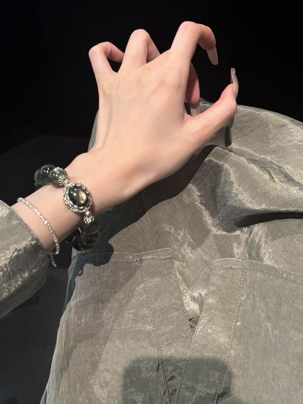 Each bead is carefully selected for its quality and consistency in color, ensuring a cohesive and visually striking piece. Wear it as a reminder of tranquility in a busy world, or as a stylish statement of your refined taste. Embrace the沉稳 charm of dark green Lepidolite with our “Emerald Serenity” Bracelet — your new go - to accessory for both beauty and balance.