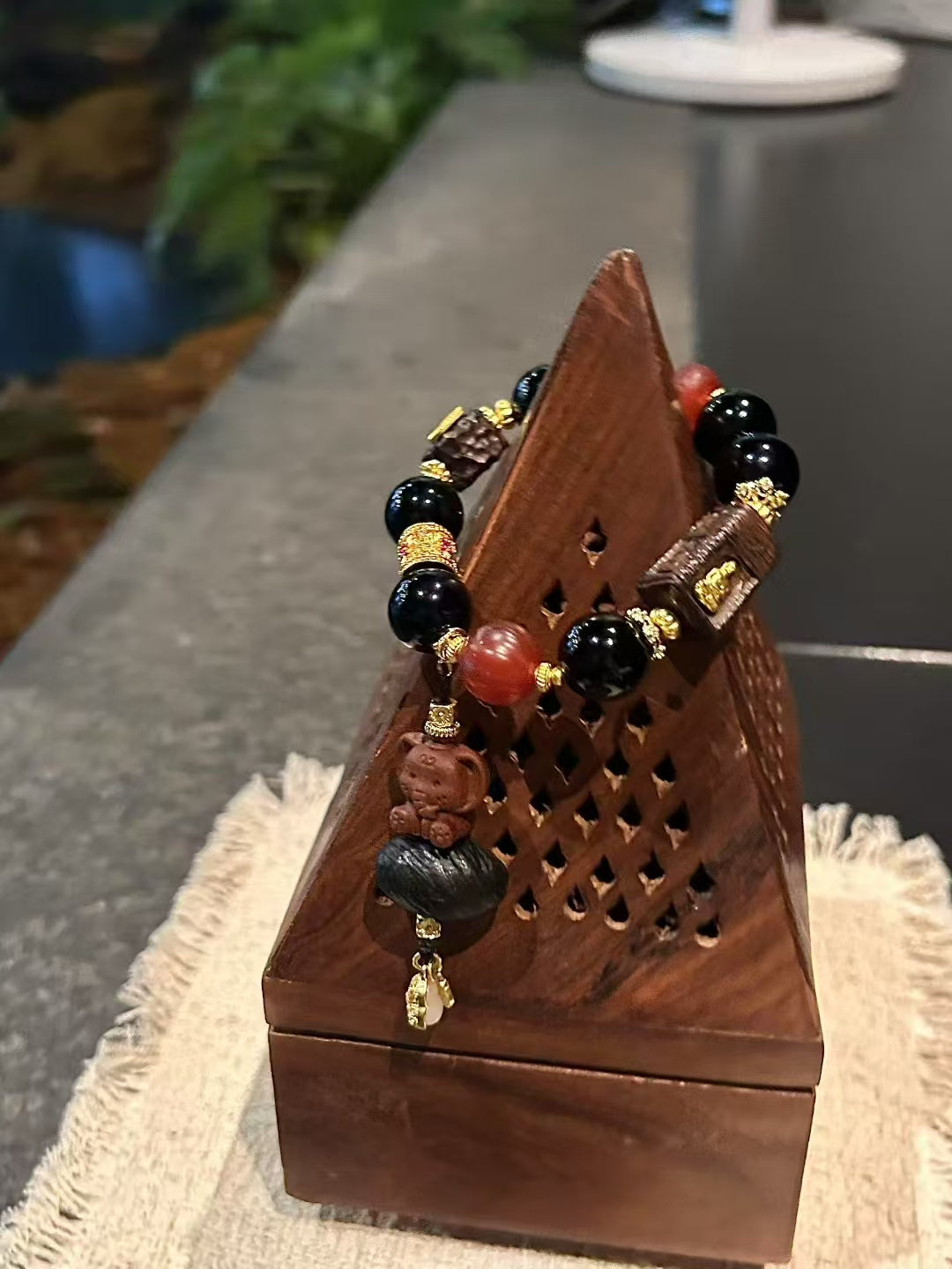 Crafted with 15mm beads, this bracelet features obsidian, renowned in metaphysics for its ability to absorb and dispel negative energy. It acts as a shield, protecting you from external stressors and psychic attacks. The old - mountain sandalwood beads carry a calming and grounding energy, helping to soothe frayed nerves and bring a sense of tranquility. Sandalwood has long been used in spiritual practices for its ability to quiet the mind and enhance focus.