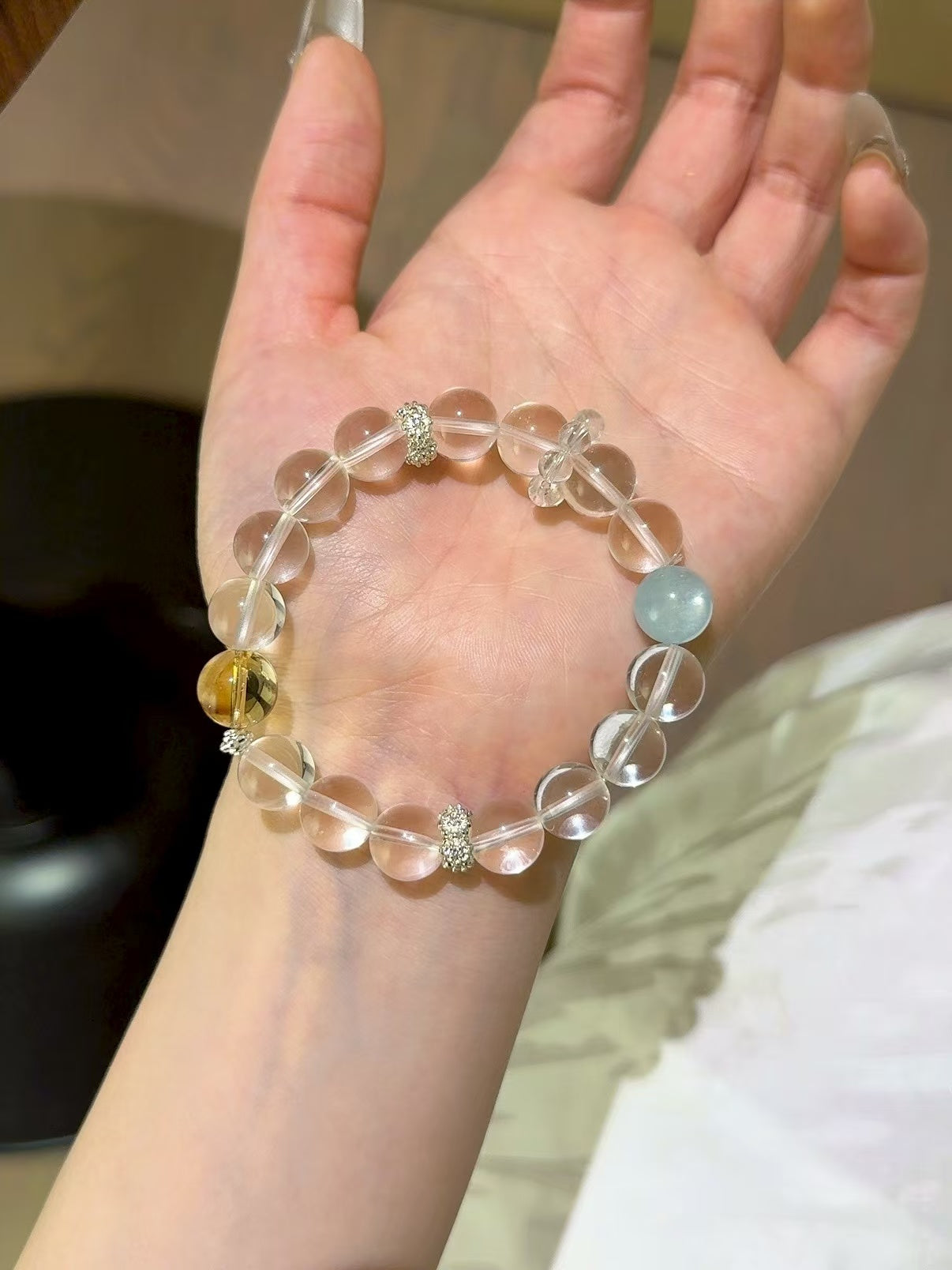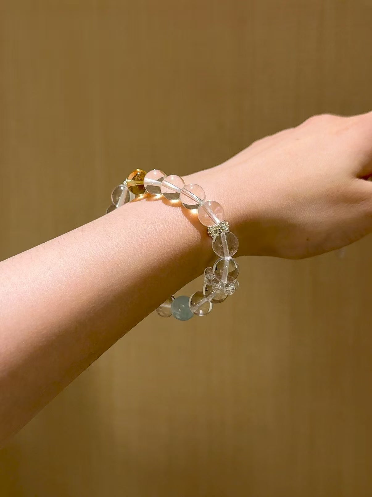 Interspersed among the clear quartz are the enchanting aquamarine beads. In Chinese beliefs, aquamarine is associated with calmness, communication, and emotional balance. Its soothing blue hue evokes the serenity of the ocean, washing away stress and anxiety, and promoting clear - mindedness and harmonious self - expression. It helps you connect with your inner voice and navigate life's challenges with grace.