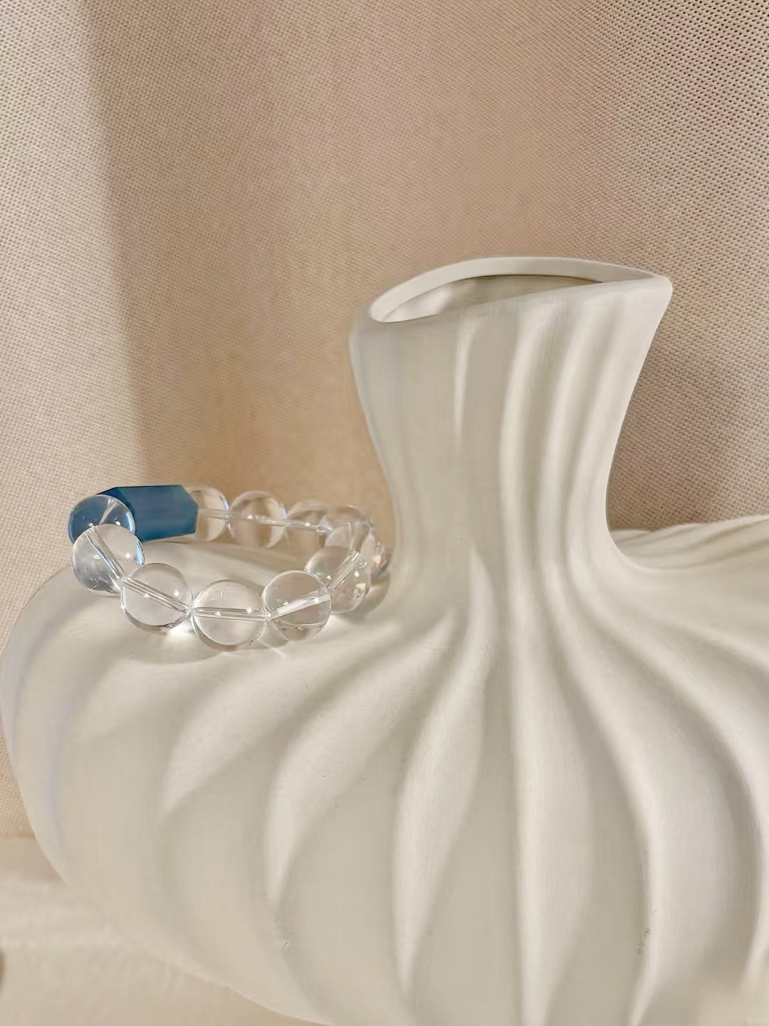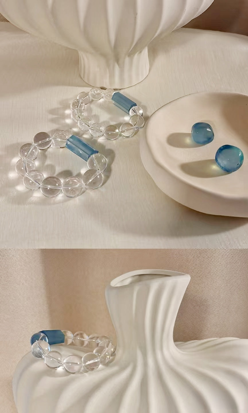 This Healing Crystal Bracelet combines the pure energy of Clear Crystal and the soothing power of Aquamarine. Clear Crystal is known as the “master healer” in metaphysics, believed to amplify positive energy, cleanse negative vibes, and bring clarity to the mind. Aquamarine, with its serene blue hue reminiscent of the calm sea, is thought to calm emotions, reduce stress, and promote a sense of peace and tranquility. Wearing this bracelet, you can embrace the healing energy of these crystals, letting their metaphysical properties bring balance and comfort to your life. It's not just a piece of jewelry; it's a companion for your spiritual journey, adding a touch of elegance and positive energy to your everyday style.