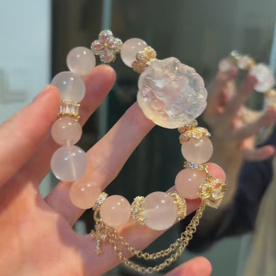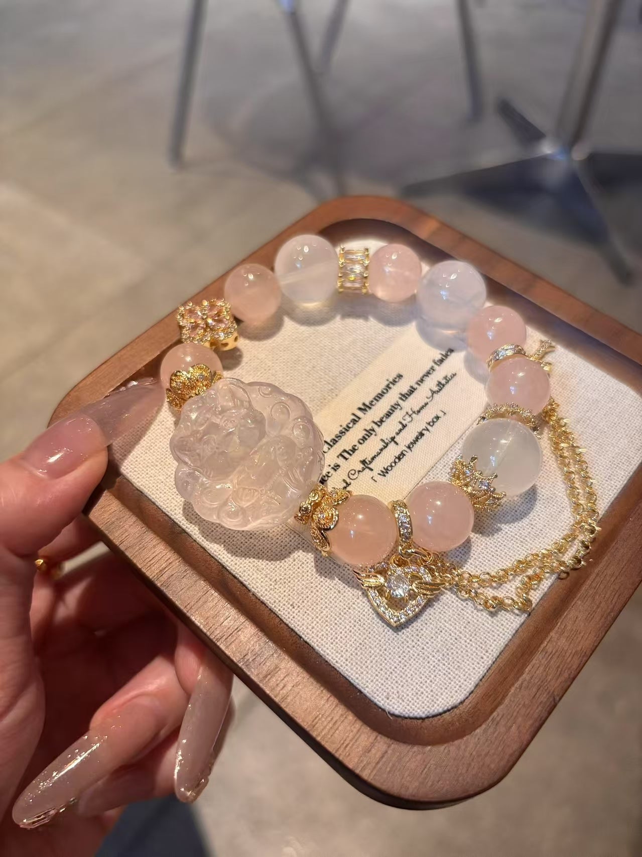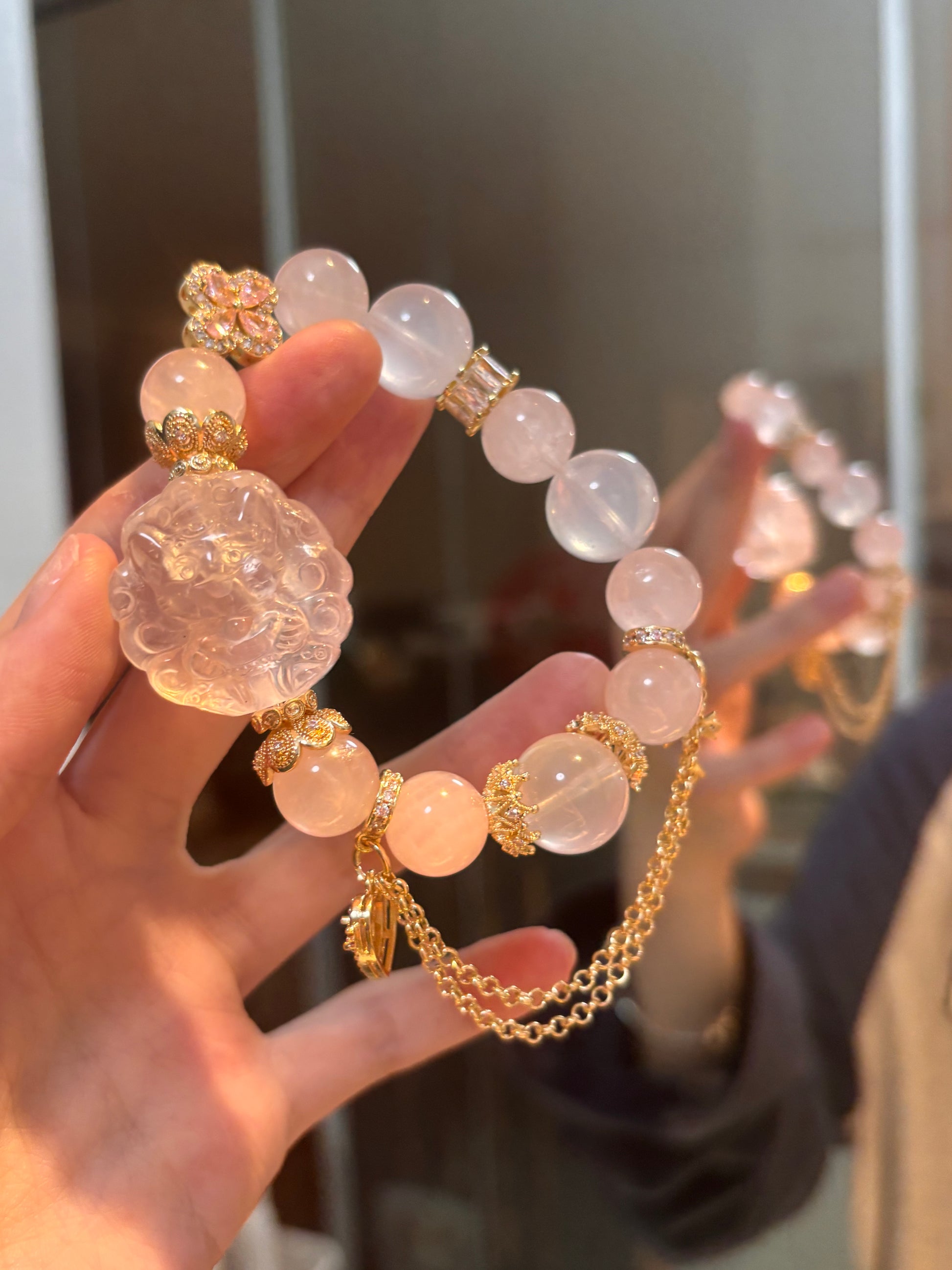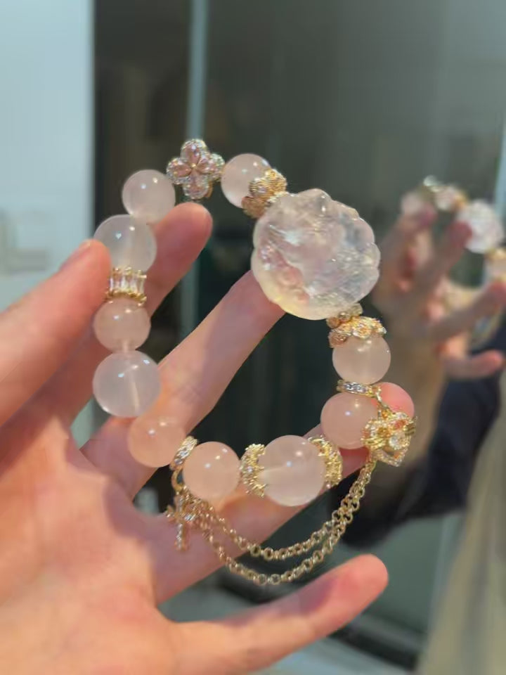 The unique design, blending the soft pink of rose quartz with the elegant gold elements, also makes it a stylish accessory that can boost one's confidence. And when confidence rises, it often becomes easier to put oneself out there in the dating scene, increasing the chances of meeting that special someone. So, for foreigners looking to enhance their love life, this bracelet could be both a beautiful adornment and a little "love magnet".