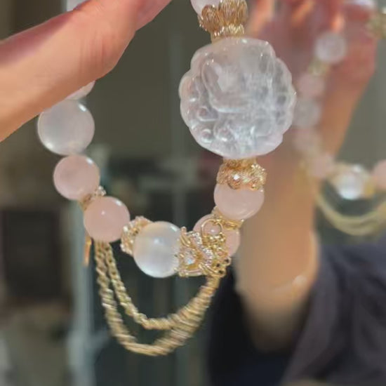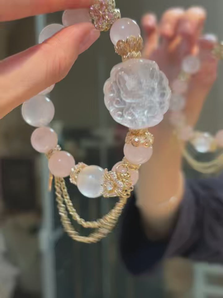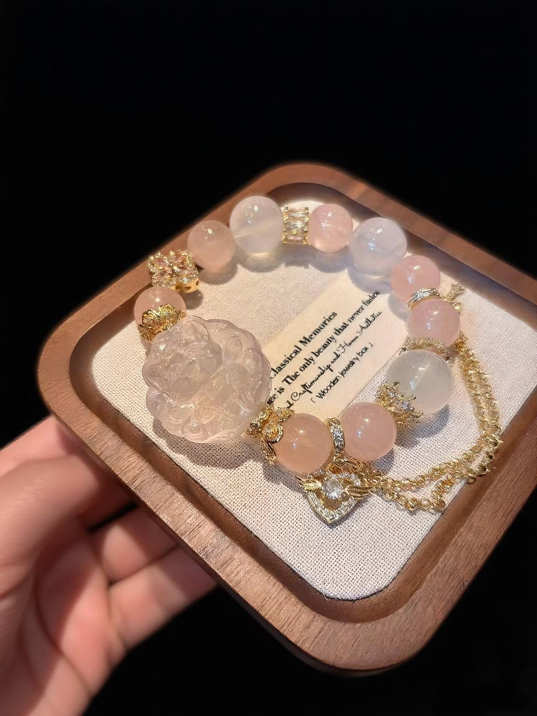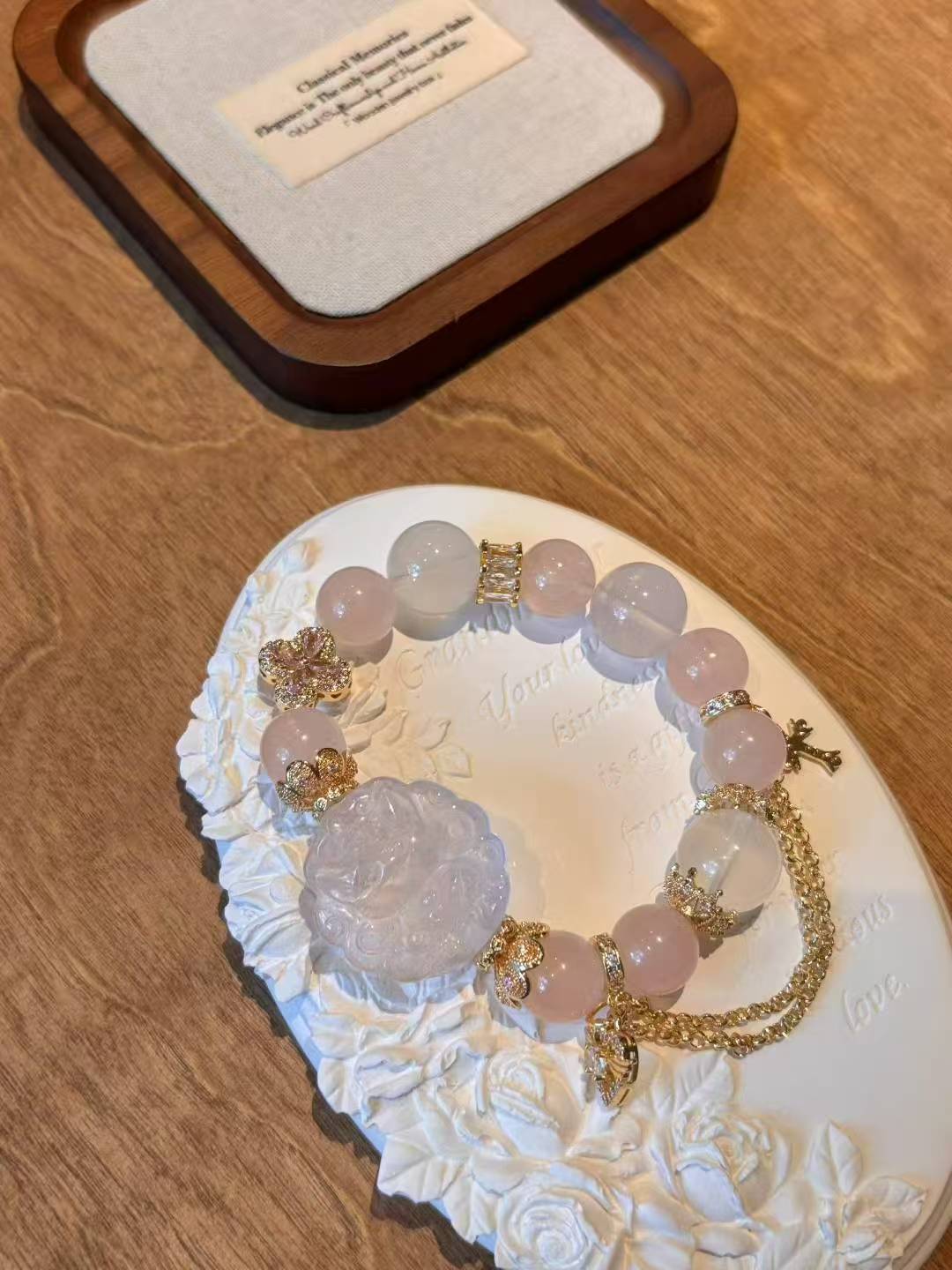 The unique design, blending the soft pink of rose quartz with the elegant gold elements, also makes it a stylish accessory that can boost one's confidence. And when confidence rises, it often becomes easier to put oneself out there in the dating scene, increasing the chances of meeting that special someone. So, for foreigners looking to enhance their love life, this bracelet could be both a beautiful adornment and a little "love magnet".