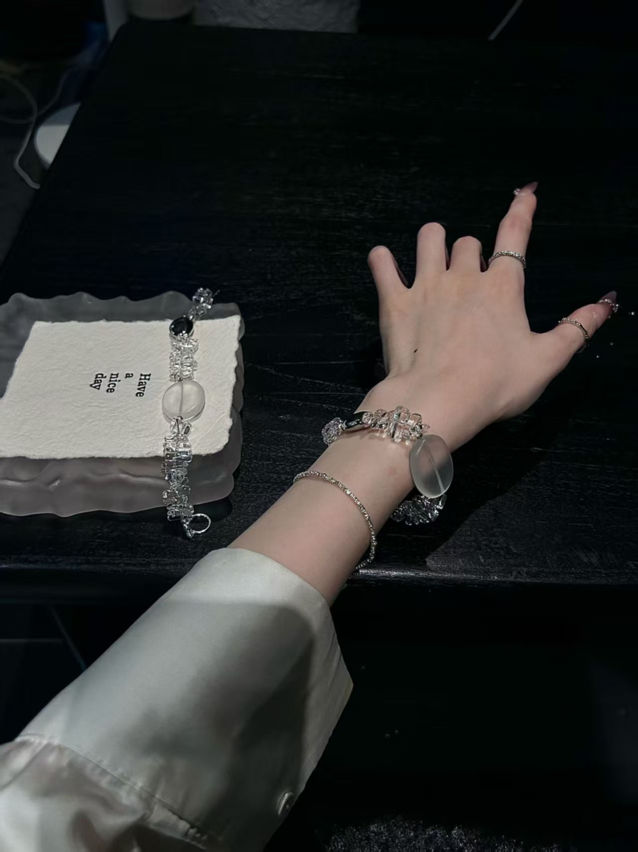 The design of the bracelet, with its delicate arrangement of clear quartz pieces, exudes a minimalist yet modern aesthetic that appeals to Western tastes. Whether you're attending a formal event or going about your daily routine, this bracelet is a versatile accessory that can effortlessly elevate your look.