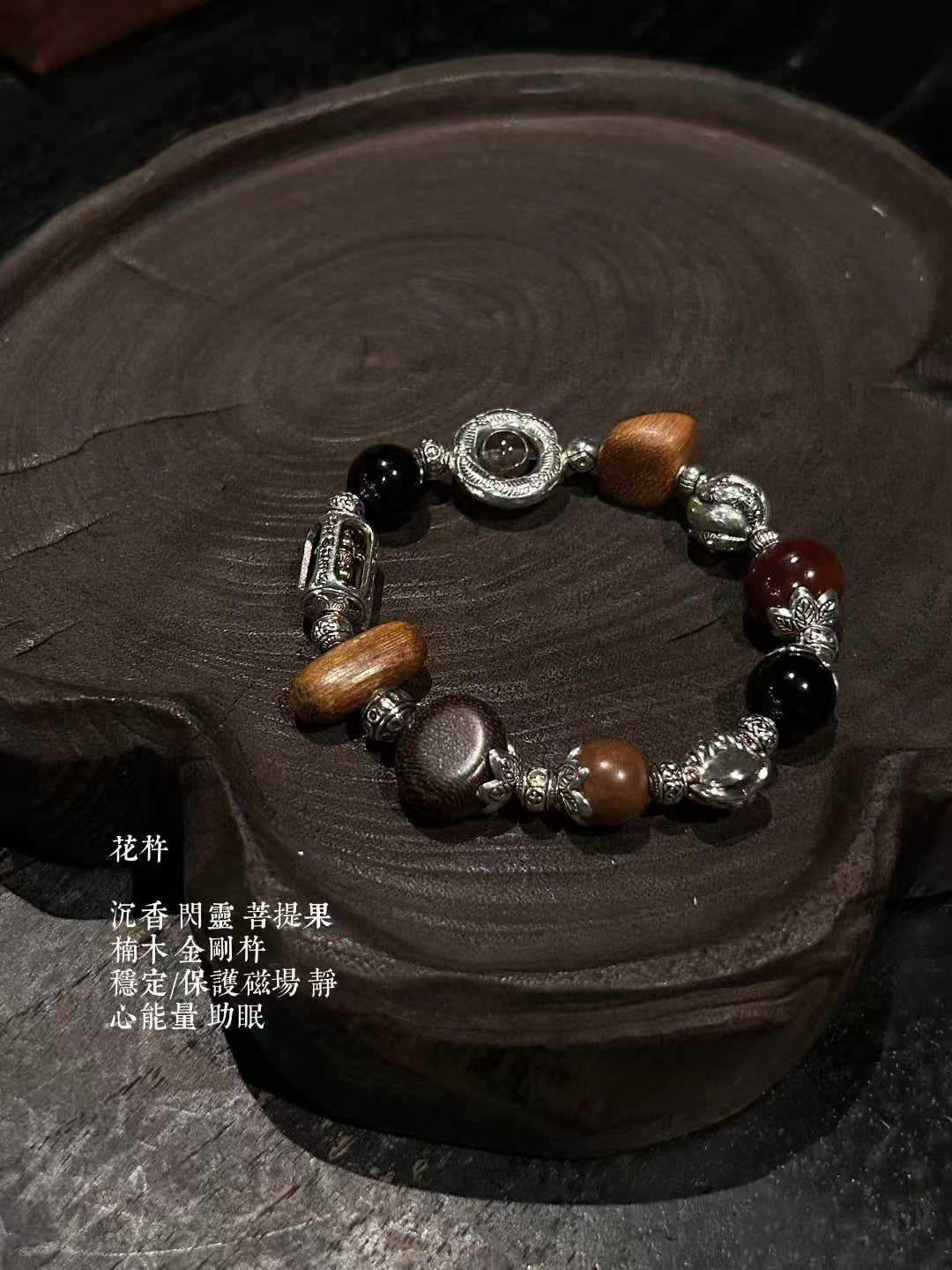 • Nanmu Wood(楠木) & Vajra Pendant(金刚杵): Nanmu wood stabilizes your energy field, while the vajra—a sacred Buddhist symbol—acts as a shield, repelling negativity and reinforcing inner strength.