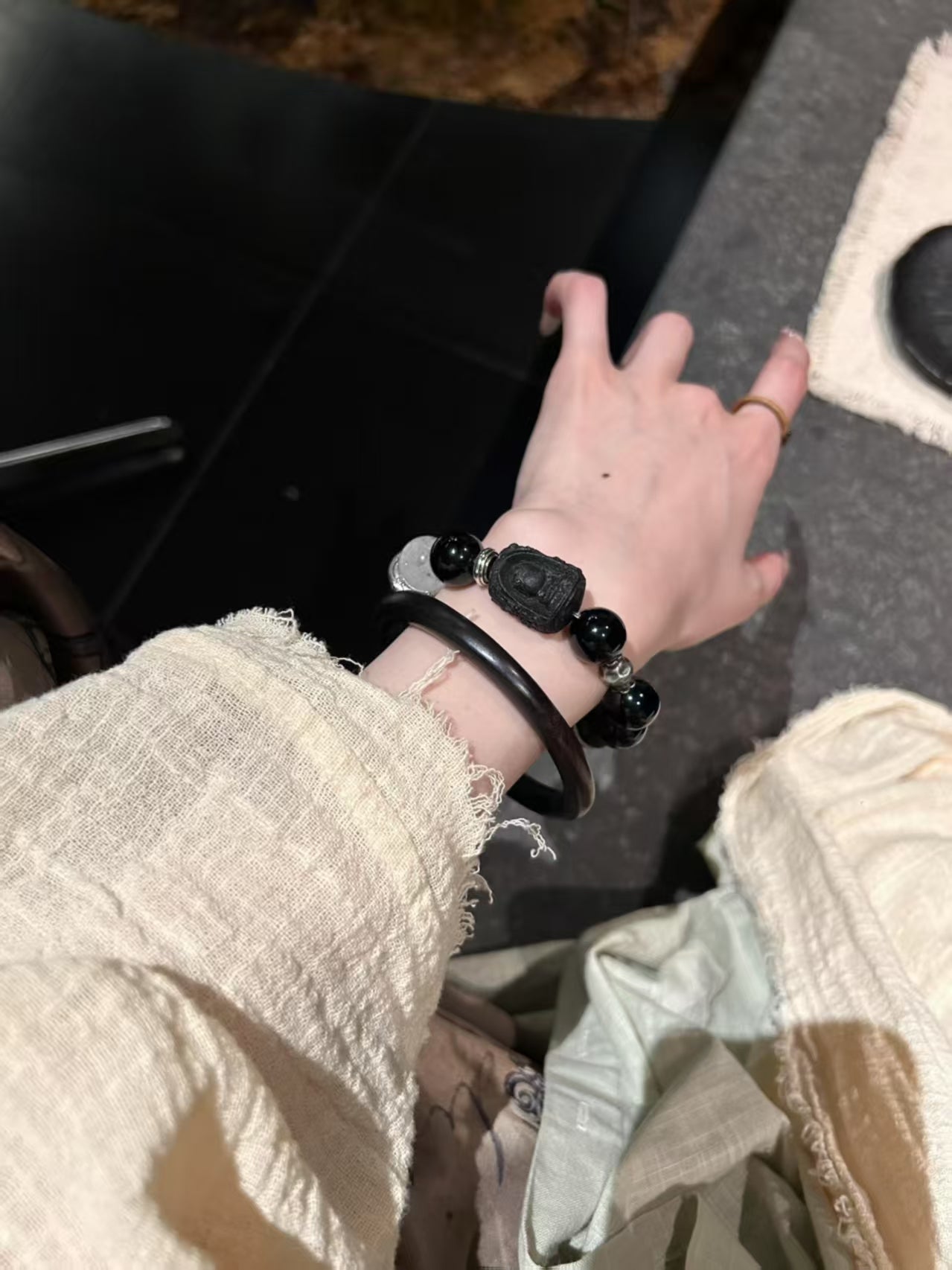 • Black Obsidian Gourd(黑檀葫芦 & 黑曜石): The black obsidian gourd is a powerful symbol of protection in metaphysics. Obsidian acts as a “spiritual bodyguard,” absorbing and transmuting negative energy, while the gourd shape (a traditional talisman in many cultures) wards off misfortune and attracts good luck.